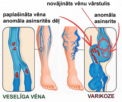 Rezultātā asinis vēnās sastājas īpaši netālu no vēnu vārstiem.